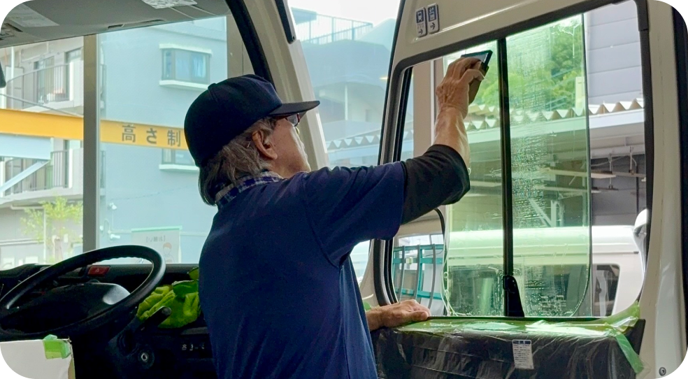 2025年夏、フロントガラスにも対応可能な透明遮熱タイプのカーフィルムを、対象⾞両へ無料で施⼯するモニター募集キャンペーン実施しました。ご応募いただいた中から5社の社⽤⾞にカーフィルムを施⼯し、感想などを伺いました。